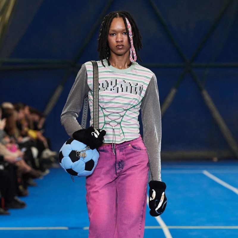 Por su parte, Miu Miu, la marca conocida por su talento, presentó las emblemáticas bailarinas de satén en su pasarela Primavera 2024, un calzado tradicionalmente vinculado al ballet, pero que hoy en día se ha transformado en una pieza de street style. Esta fusión entre la danza y la moda de lujo desafía las normas y generaliza el arte de vestir, llevando la elegancia de la danza más allá de las salas de ensayo y transformándola en un símbolo de estilo accesible.